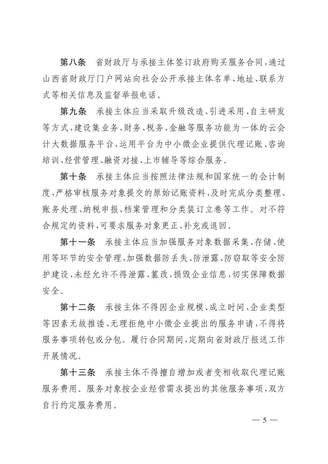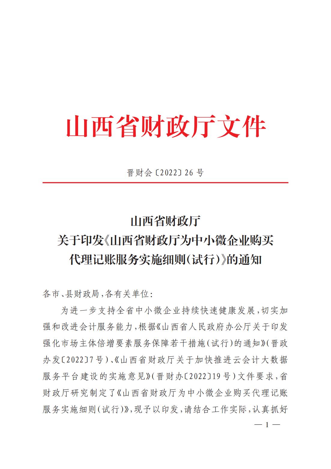 關(guān)于印發(fā)《山西省財政廳為中小微企業(yè)購買代理記賬服務(wù)實(shí)施細(xì)則(試行)》的通知